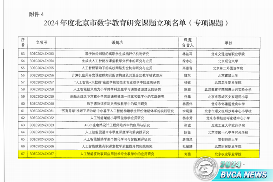 近日,北京市教育委員會公布了2024年度北京市數字教育研究課題立項名單,我校向雙云副教授和劉茵副教授主持的課題分別獲得重點課題和專項課題立項。