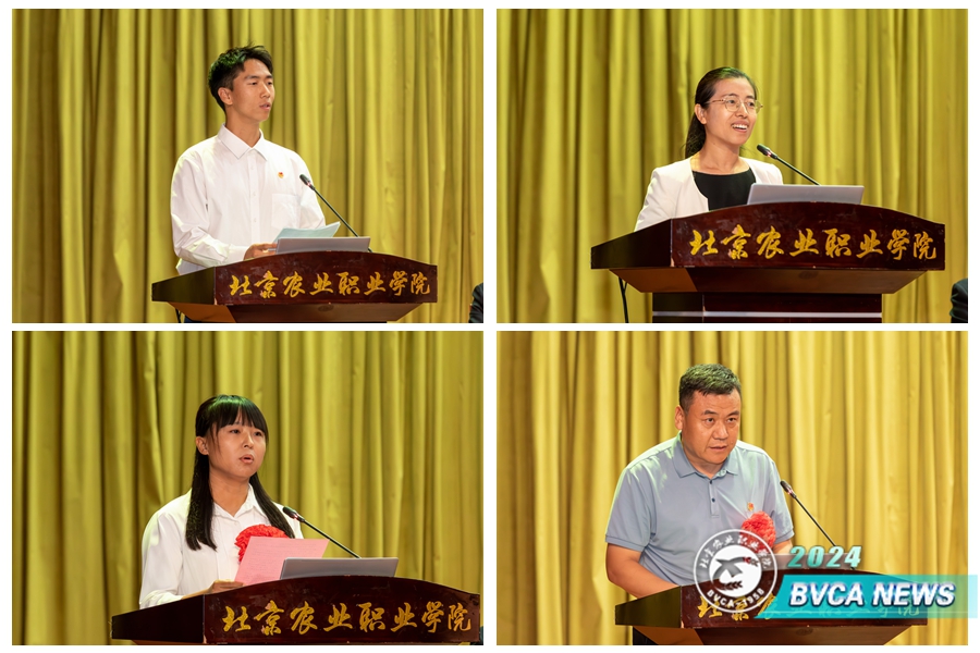 商務與管理學院石巖、動物科技學院胡平、智慧農業工程學院李小明、食品與生物工程學院王冰潔四位教師代表向全體教師發起倡議:做高尚師德的榜樣、做科學育人的楷模、做引領改革的先鋒、做忠誠奉獻的表率,將教育家精神轉化為思想自覺、行動自覺,以實際行動當好全國“大先生”、首都“大先生”、農職“大先生”。