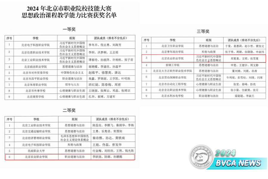 日前,北京市教育委員會(huì)公布了2024年北京市職業(yè)院校技能大賽思想政治課程教學(xué)能力比賽獲獎(jiǎng)結(jié)果。我校馬克思主義學(xué)院李躍揚(yáng)、陸娜、孫鵬懿教學(xué)團(tuán)隊(duì)榮獲《思想道德與法治》課程組二等獎(jiǎng),文碩、鄭夏童、張雪霞教學(xué)團(tuán)隊(duì)榮獲《習(xí)近平新時(shí)代中國(guó)特色社會(huì)主義思想概論》課程組三等獎(jiǎng)。