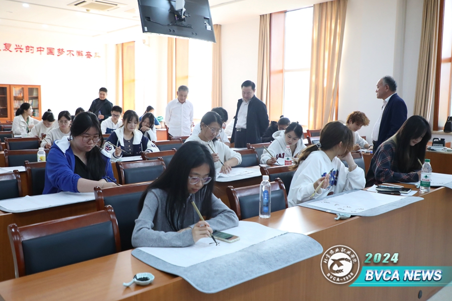 任新功從書法定義出發(fā),介紹了其發(fā)展過程、技巧等。理論講解之后,他與學(xué)生互動(dòng)交流,點(diǎn)評練習(xí)情況,并現(xiàn)場創(chuàng)作,傳授技巧,贈(zèng)送作品,寄語學(xué)生傳承文化。