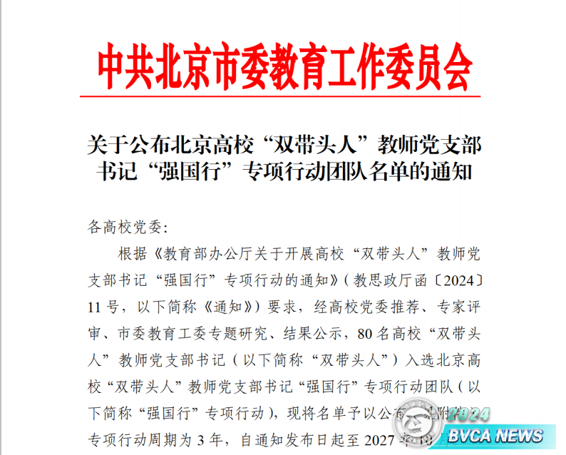 此次入選北京高校“雙帶頭人”教師黨支部書記“強國行”專項行動,是學校基層黨組織建設的又一次新突破,也是學校高質量黨建引領事業高質量發展的重要成果,為學校基層黨支部標準化規范化建設提供了樣板和示范。