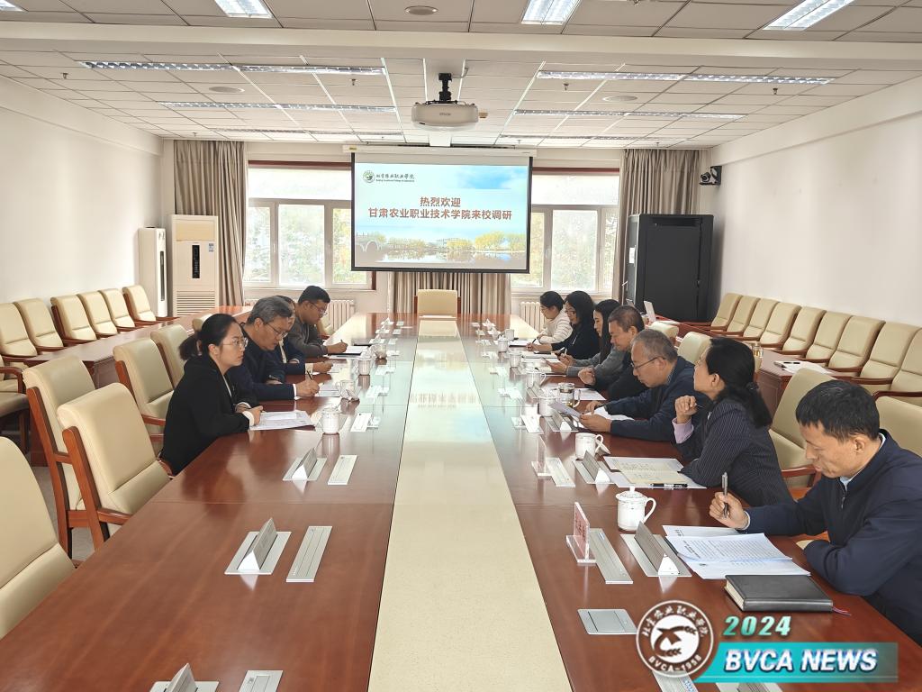 10月30日上午,甘肅農業(yè)職業(yè)技術學院黨委書記薛仰全一行4人來校調研交流,學校黨委書記周志成出席座談會,黨委副書記魯雷主持座談會并陪同調研參觀。
