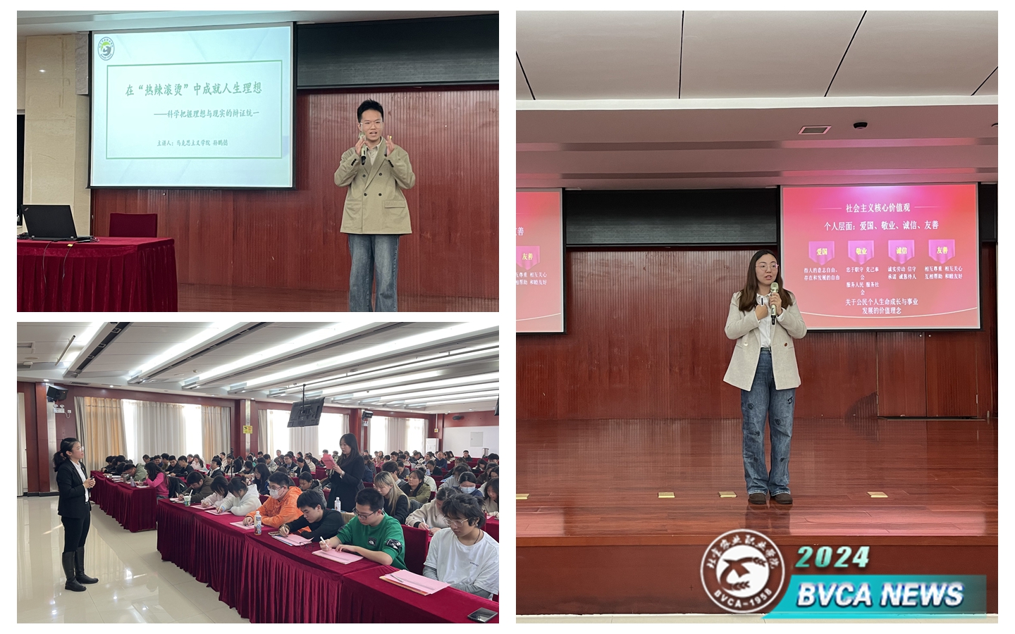 思政課教學(xué)展示分別從中職階段的《哲學(xué)與人生》、高職階段的《思想道德與法治》《習(xí)近平新時代中國特色社會主義思想概論》三門課程講起,展現(xiàn)了馬克思主義學(xué)院教師在中高職思政課一體化建設(shè)方面的深入探索。課堂之上,三位授課教師運(yùn)用生動的案例、詳實的資料對馬克思主義理論相關(guān)內(nèi)容進(jìn)行闡述,展露了扎實的理論素養(yǎng)和專業(yè)素養(yǎng)。同學(xué)們積極參與互動,課堂氣氛融洽。
