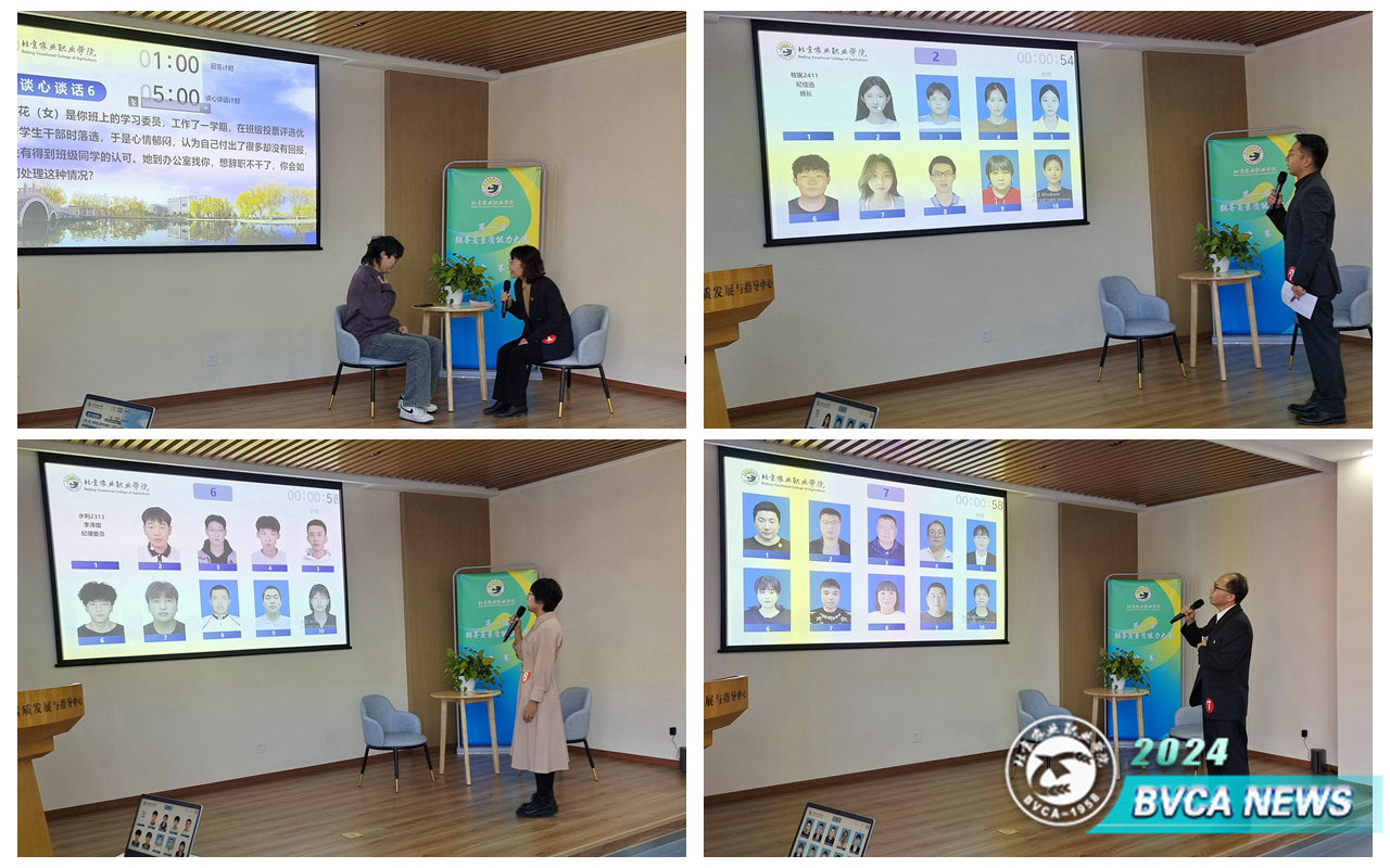 決賽設有案例研討、學生辨識、談心談話三個環節。案例研討中,選手兩人一組,以AB角互換方式共同剖析案例中的矛盾焦點,深入探討解決策略,展現出良好的現場應變和邏輯思辨能力。學生辨識中,每位選手需辨識10名隨機抽取的所帶班級學生,準確回答出學生基本情況。談心談話中,以情景再現的方式還原了輔導員現實工作中與學生交流的場景,展現了輔導員在學生工作中的專業素養和實踐能力。