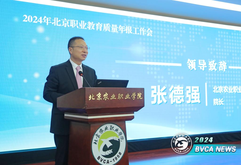 張德強代表學校致辭,對參會代表的蒞臨表示熱烈歡迎,介紹了學校的基本情況、建設成果和發展目標,對榮獲北京市優秀年報的有關單位表示祝賀。他強調質量年報制度對促進職業學校夯實內涵、持續改進、全面提高人才培養質量具有積極作用,能和全市職教戰線同仁一起,共商北京市職業教育質量年報事宜,助力北京市職業教育高質量發展,感到非常榮幸。