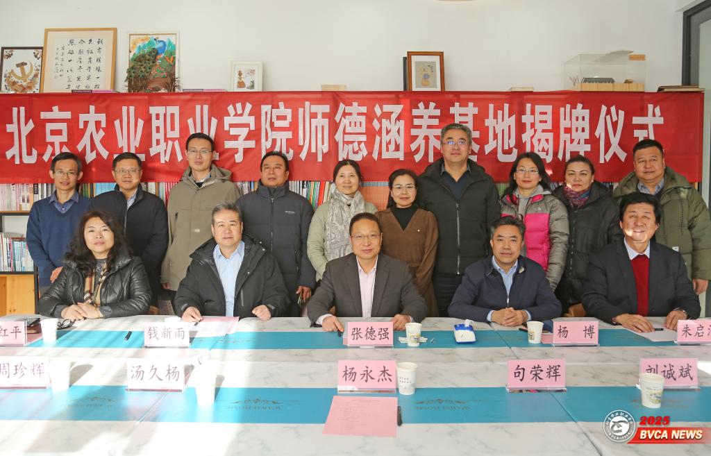 為深入學習貫徹習近平總書記關于立德樹人、加強師德師風建設的重要指示精神以及全國教育大會精神,把師德培育作為培養高素質教師隊伍的核心和基礎,深化“鑄根京郊”師德品牌建設,擴大“貫通產加銷、融合農文旅、鏈接校地生、適宜業居游”農職模式助力鄉村振興的影響力,在房山區科協支持下,我校在房山區鄉村振興工作站暨柿都小鎮設立了首個師德涵養基地,并于2024年12月30日舉行了揭牌儀式。學校黨委副書記、院長張德強與房山區科協黨組書記、常務副主席、房山區鄉村振興工作站站長錢新雨共同為師德涵養基地揭牌,黨委常委、副院長楊博主持揭牌儀式,教師工作部、教務處、科研處和二級學院負責人,房山區鄉村振興工作站副站長、柿都小鎮負責人、我校退休教授朱啟酒等參加。