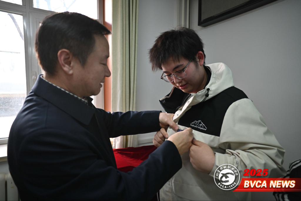 儀式伊始,周洪生和老師們為同學們佩戴了班徽。隨后,排水2412班班長趙天賜作為學生代表發言,他表示,感謝校領導和老師們的關心關愛和耐心指導,讓我們充滿正能量。在戴上班徽的那一刻,一種強烈的歸屬感與使命感油然而生,它不僅僅是一個標志,更是一份責任,串聯起屬于我們這個集體的每一個珍貴瞬間。