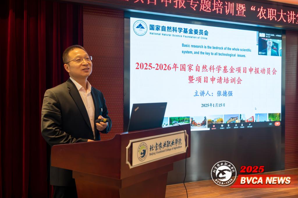為深入貫徹落實學校第四次黨代會戰略部署,提升科研人員的創新能力和科研素養,提高科研層次和水平,促進學校科技創新高質量發展。1月15日下午,學校舉辦國家自然科學基金項目申報專題培訓暨“農職大講堂”二十三期講座,特邀學校黨委副書記、院長張德強教授做2025—2026年國家自然科學基金項目申報動員會專題報告。黨委常委、副院長楊博主持。