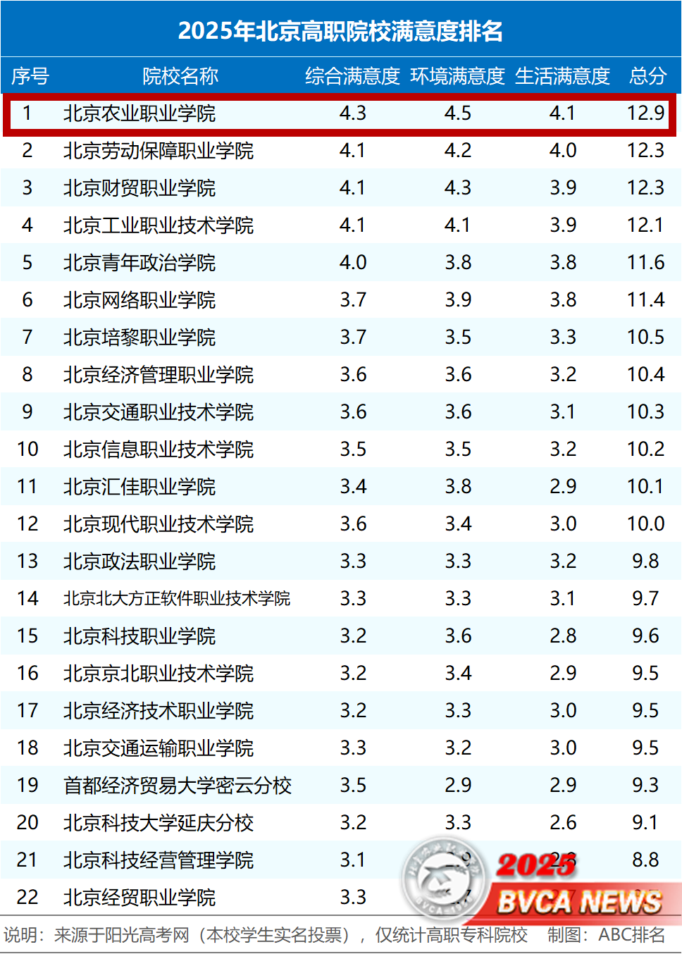 近日,根據(jù)陽光高考網(wǎng)公布的數(shù)據(jù),我校在2025年中國高職(專科)院校滿意度評價(jià)中綜合滿意度、環(huán)境滿意度、生活滿意度排名蟬聯(lián)全市第一。