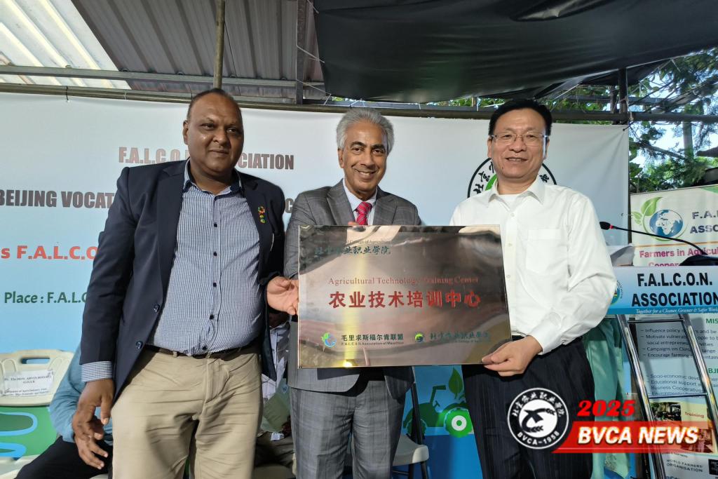 在毛里求斯,訪問(wèn)團(tuán)首站與福爾肯聯(lián)盟舉行隆重的“北京農(nóng)業(yè)職業(yè)學(xué)院-毛里求斯福爾肯聯(lián)盟海外農(nóng)業(yè)技術(shù)培訓(xùn)中心”授牌儀式,谷天剛為福爾肯聯(lián)盟授牌,并發(fā)表致辭,雙方簽署海外農(nóng)業(yè)技術(shù)培訓(xùn)中心合作協(xié)議,標(biāo)志著雙方在農(nóng)業(yè)技術(shù)培訓(xùn)、人才本土化培養(yǎng)領(lǐng)域的合作進(jìn)入新階段。毛里求斯農(nóng)業(yè)產(chǎn)業(yè)、食品安全、藍(lán)色經(jīng)濟(jì)和漁業(yè)部部長(zhǎng)阿爾文.布勒爾,社會(huì)綜合、安全和國(guó)家團(tuán)結(jié)部部長(zhǎng)阿紹科.蘇伯侖等出席儀式,當(dāng)?shù)刂髁髅襟w全程該報(bào)道。