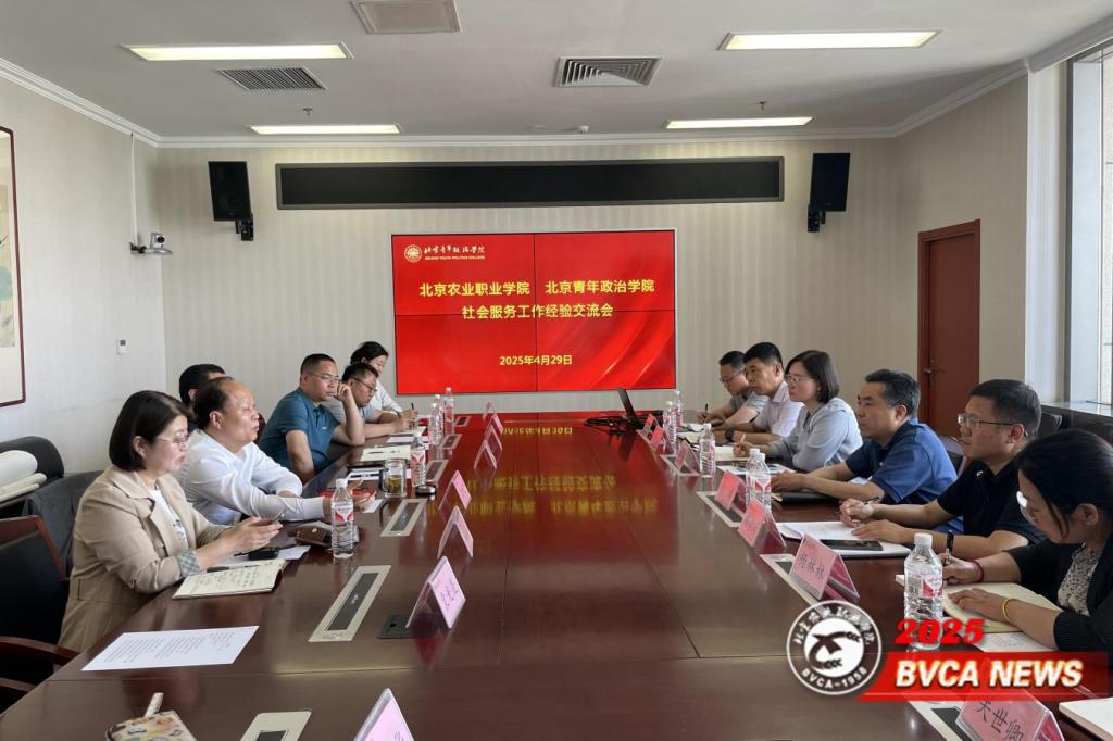 4月29日,學校黨委常委、副院長楊博帶隊赴北京青年政治學院調研交流社會服務工作。北京青年政治學院黨委常委、副院長劉如贊主持召開座談會。