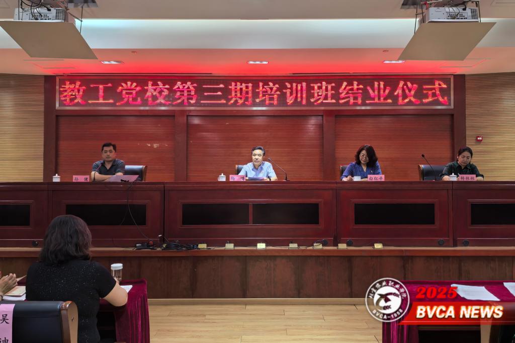 7月4日下午,教工黨校第三期培訓班結業式在長陽校區培訓中心多功能廳舉行,黨委常委、副院長楊博出席并講話,人事處處長白紅平、副處長楊林林出席結業式,結業式由人事處副處長孫健主持。