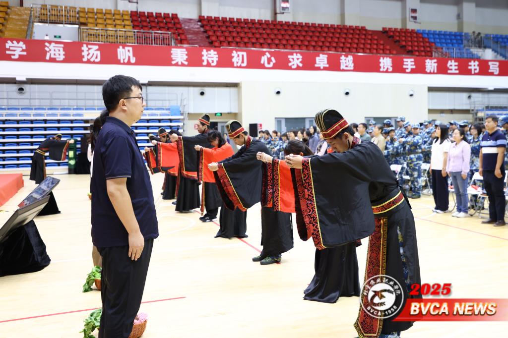 “束脩之禮”環節彰顯尊師重道傳統,2025年師德榜樣教師代表接受敬意。