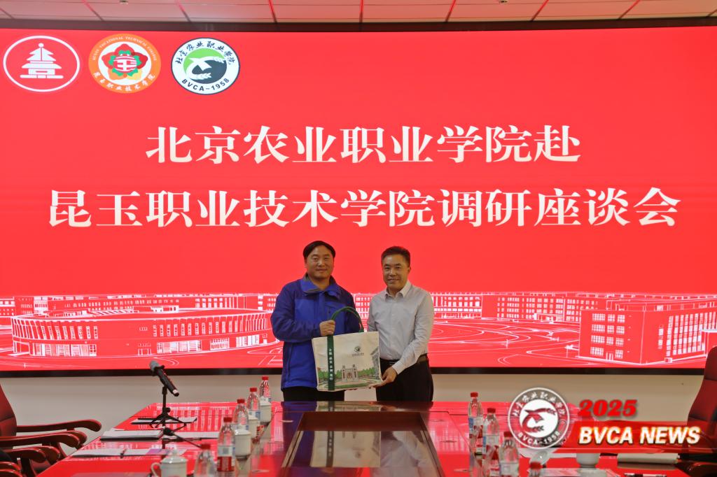 調(diào)研組前往昆玉職業(yè)技術(shù)學(xué)院,看望慰問援派到該校農(nóng)牧科技學(xué)院的我校園藝園林學(xué)院教授鄭志勇,為其送上慰問金與文創(chuàng)產(chǎn)品。并與新疆生產(chǎn)建設(shè)兵團(tuán)第十四師昆玉市黨委書記、政委蔣欣,師市黨委常委、副政委、組織部部長顏俊,昆玉職業(yè)技術(shù)學(xué)院領(lǐng)導(dǎo)班子圍繞辦學(xué)歷史、專業(yè)特色、發(fā)展規(guī)劃開展座談交流,就專業(yè)共建、師資培訓(xùn)、科研服務(wù)、國際合作等領(lǐng)域達(dá)成合作共識(shí)。鄭志勇分享援疆期間教育教學(xué)經(jīng)驗(yàn),重點(diǎn)介紹指導(dǎo)學(xué)生參與技能競賽并獲獎(jiǎng)的實(shí)踐成果,充分展現(xiàn)學(xué)校援疆工作的階段性成效。