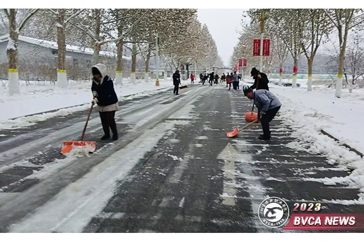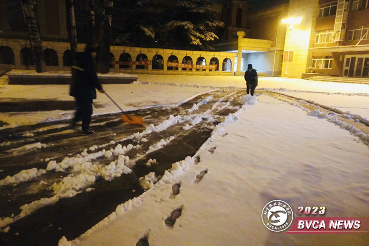 12月10日夜間,北京迎來入冬以來首場降雪,全市平均降雪量0.7毫米,我院四校區(qū)所處地區(qū)降雪相對明顯,已到中雪量級。降雪帶來的道路濕滑、大幅降溫等問題給師生員工出行帶來諸多不便,存在較大安全隱患。為快速清除路面積雪,保障正常出行安全,后勤保障部以雪為令、積極行動,于清晨5點(diǎn)半組織四校區(qū)物業(yè)人員開展掃雪鏟冰行動,全力以赴做好出行保障工作。