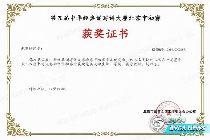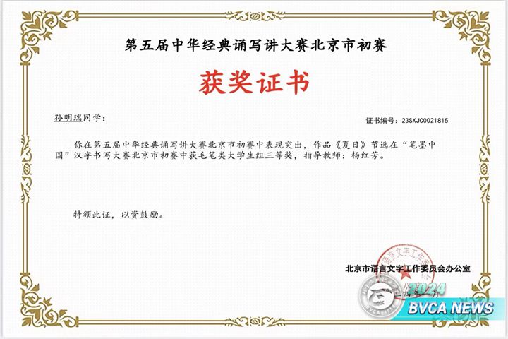 雅言傳承文明,經典浸潤人生。近日,由教育部、國家語委主辦的第五屆中華經典誦寫講大賽“筆墨中國”漢字書寫大賽獲獎名單正式公布,我校學生再創佳績。貫通綠檢1912班龐英律同學憑借岳飛詩詞三首榮獲硬筆類大學生組一等獎,貫通綠檢1912班孫明瑞同學的作品《夏日》(節選)榮獲毛筆類大學生組三等獎,通識教育學院(體育部)楊紅芳老師榮獲“優秀指導教師”稱號。