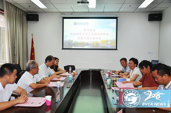 賽前,我院還舉辦了兩岸職業教育交流會。京臺兩地參加此次技能大賽的5所學校帶隊領導和我院教務處、國際合作與交流處、畜牧獸醫系的負責同志參加了交流。李俊英同志參加交流會,發表了熱情洋溢的講話,希望大家能增進了解,促進合作。大仁科技大學副校長黃國光、中華醫事科技大學寵物美容系主任楊佳璋、北京市昌平職業學校智慧農業系主任高鑫、北京市園林學校教務科科長張培燕分別對各自院校的辦學情況和特色進行了介紹。我院畜牧獸醫系主任曹授俊介紹了寵物專業的建設情況。各院校就寵物專業的專業課程設置、人才培養、交流合作等方面進行了溝通交流。教務處處長楊永杰代表賽務組向在座領導匯報了技能大賽寵物美容賽項的籌備情況。