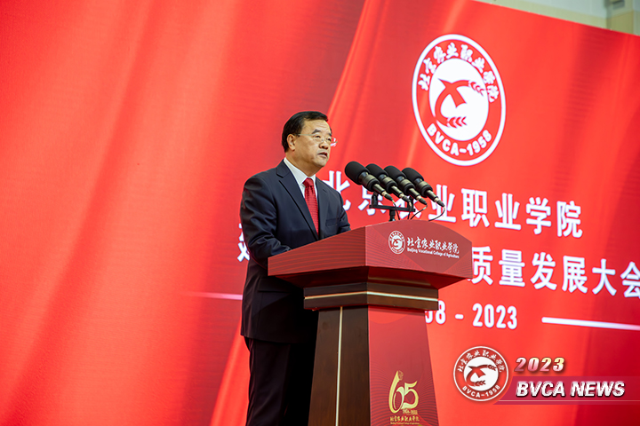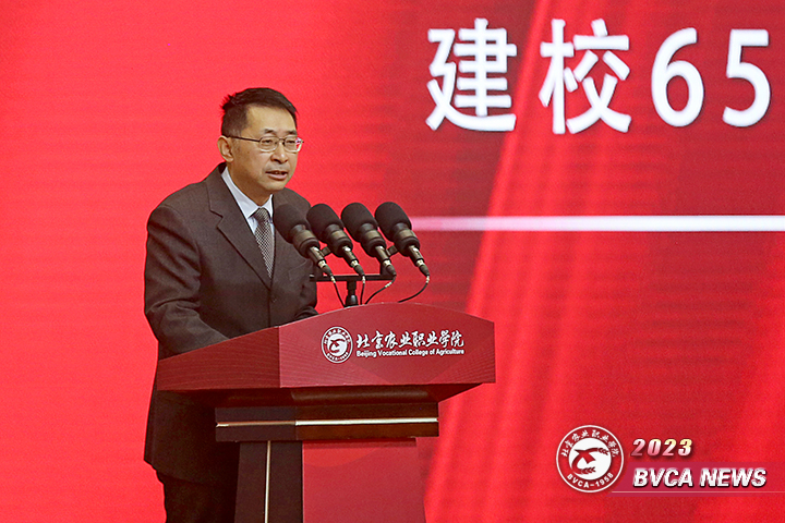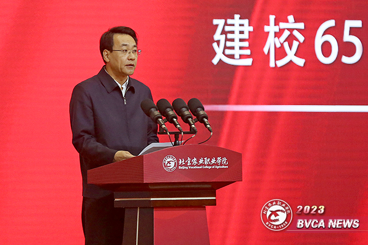 北京市教育委員會副主任柳長安代表市教委向學校提三點希望,一是要不斷強化黨建引領,堅守教育初心。要認真學習習近平總書記關于教育的重要論述,全面貫徹黨的教育方針,始終堅持立德樹人根本任務,牢記為黨育人、為國育才使命。二是持續深化產教融合,服務首都發展。要深度融入首都和京津冀地區一體化發展,聚焦首都鄉村全面振興、加快實現農業農村現代化的產業人才需要,不斷提升人才培養質量。三是主動適應職教發展,開創農職未來。要以建校65 周年為新的起點和新的發展方位,將習近平總書記對職業教育“前途廣闊、大有可為”的殷切希望,轉化為激發新動能、引領新發展、展現新作為的生動實踐。