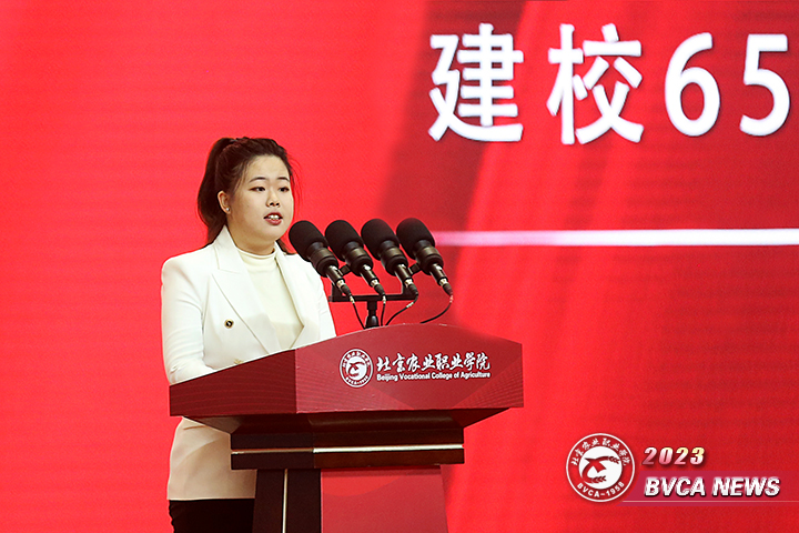 首都鄉村振興青年先鋒、中國大學生自強之星、食品與生物工程學院孟雨晴同學代表學生發言。對學院65年來在人才培養和社會服務方面取得的巨大成就,感到由衷的自豪和無限的榮光。