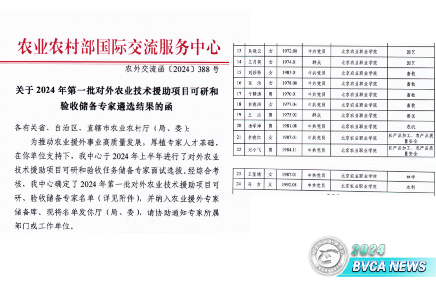 8月15日,農業農村部國際交流服務中心公布了2024年第一批對外農業技術援助項目可研和驗收儲備專家名單。經綜合考核、面試選拔,北京、天津、江蘇等9個省、市的37位專家入選,其中我校12名教師入選。