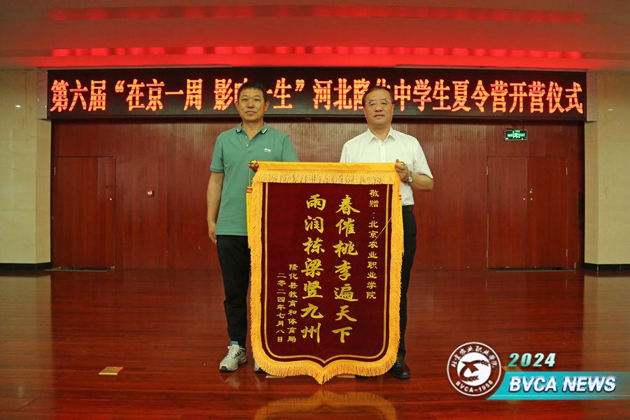范雙喜致歡迎辭。他對各位來賓表示熱烈歡迎,對李德發院士一直關注我校發展表示感謝,并對李院士關心教育、情系鄉村的情懷表示敬佩。同時他勉勵同學們以此次夏令營活動為起點,志存高遠,努力成為德智體美勞全面發展的社會主義建設者和接班人。學校動物科技學院院長周珍輝介紹了本次夏令營的各項活動安排,隆化縣郭家屯中學校長段榮軍代表四校向我校贈送錦旗以表示感謝。