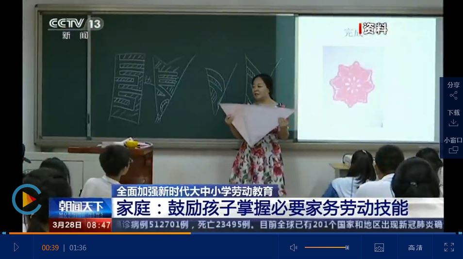 CCTV-13 朝聞天下(7:00 ):全面加強新時代大中小學勞動教育