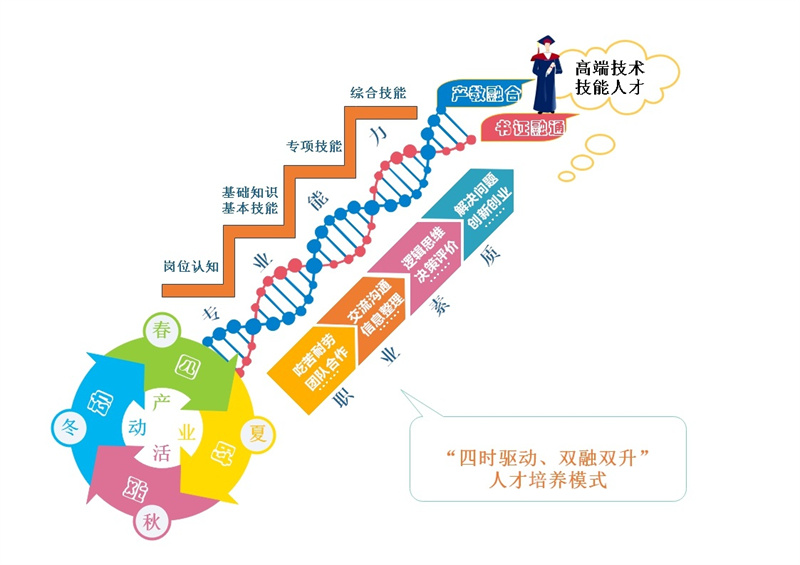 記者在調研中了解到,該校的都市園藝專業群是以園藝技術專業為核心,以園林技術、環境藝術設計和植物保護專業為支撐的專業群。該校的專業群圍繞北京“四個中心”戰略定位、都市現代農業“生產、生活、生態”特點,創新形成了“四時驅動、雙融雙升”人才培養模式。即根據四季植物生長規律和生產活動安排教學,通過產教融合和書證融通全面提升學生專業技能和職業素質,形成德技并修、工學結合的育人新模式。