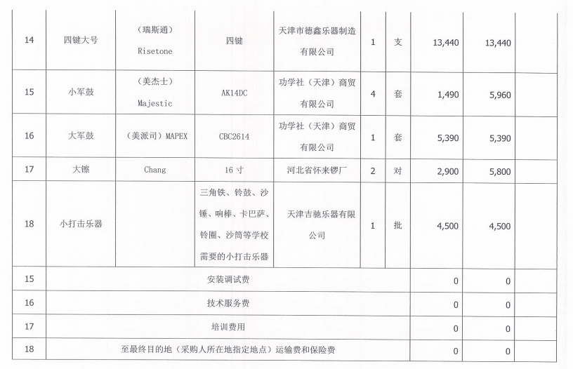 二、項目名稱:北京農業職業學院北苑校區購置樂團演奏樂器項目
