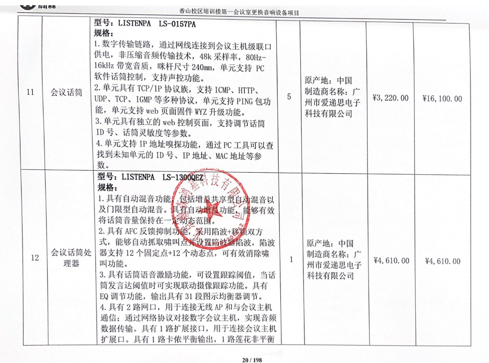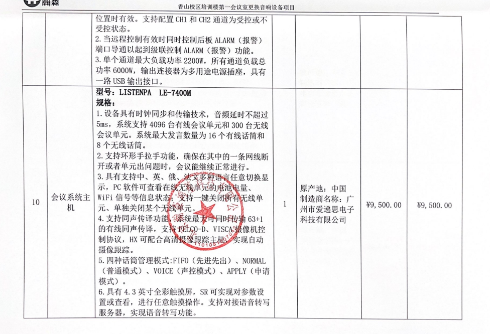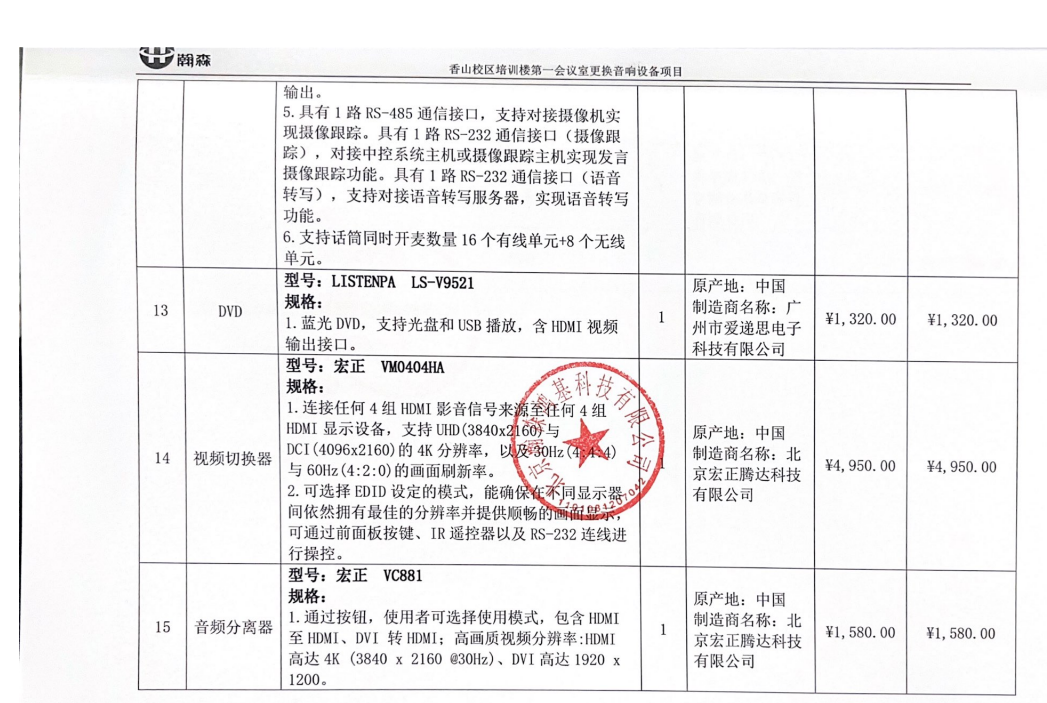二、項目名稱:香山校區培訓樓第一會議室更換音響設備項目