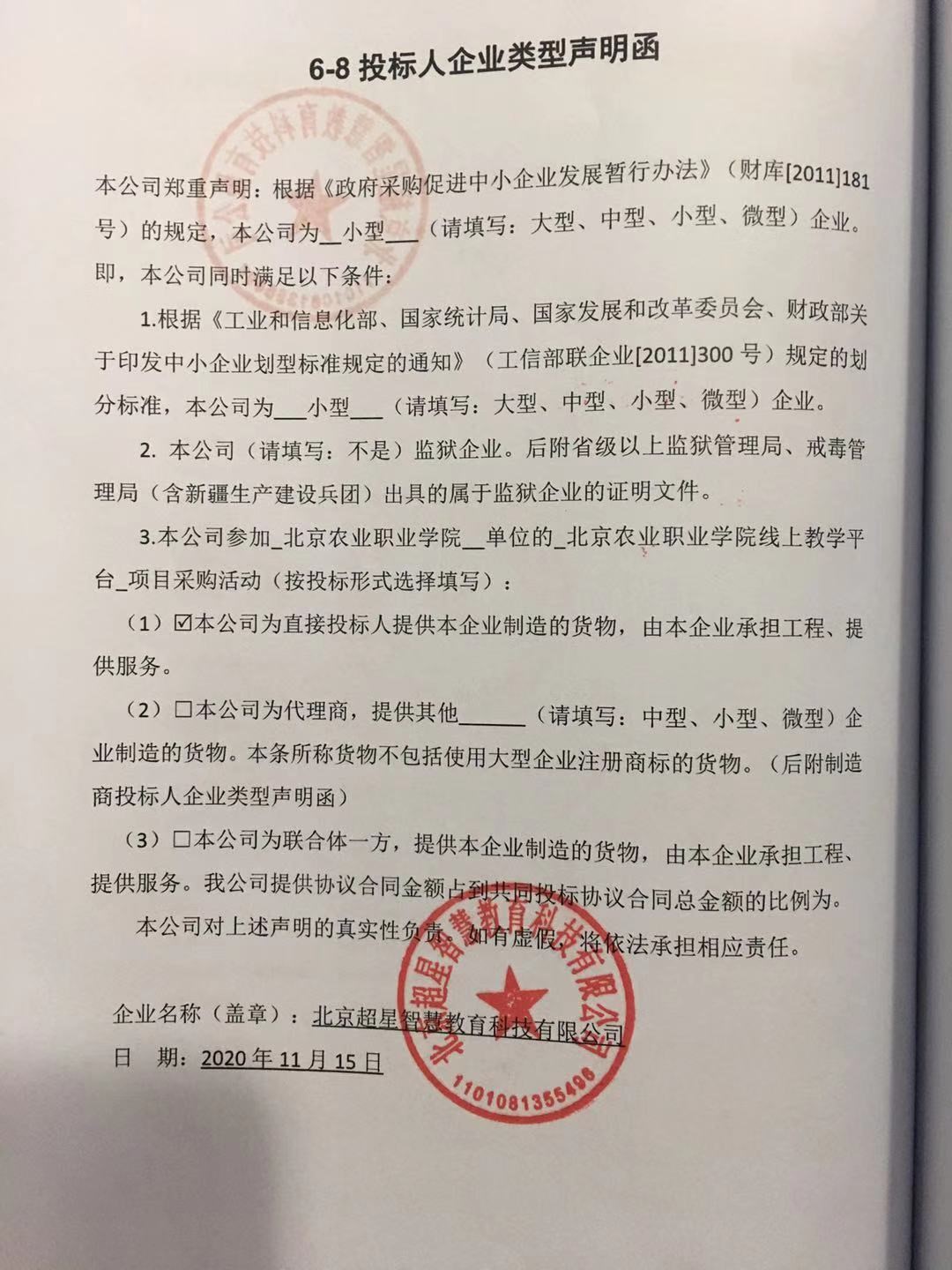 其他承諾:我公司承諾自合同簽訂之日起30個日歷天內完成交貨、安裝、調試;一年內提供售后運維服務;兩年質保服務。