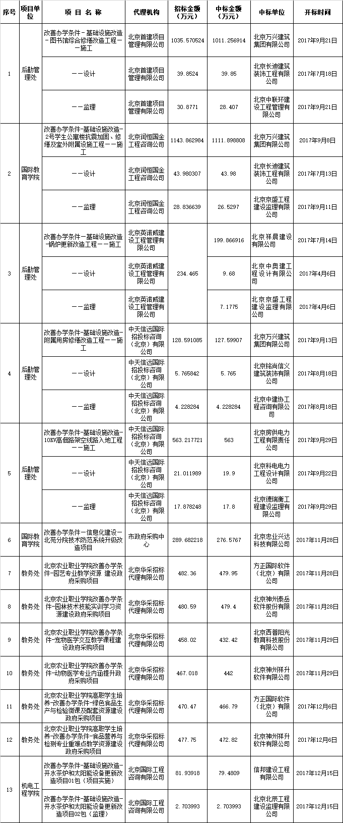 現將2017年下半年已完成的財政專項項目(基建類項目以施工招標完成時間為準)的招投標結果進行公示。此批公示項目經學校確認后已在中國政府采購網、北京市財政局網或北京市工程建設交易信息網、中國采購與招標網上進行了公示。