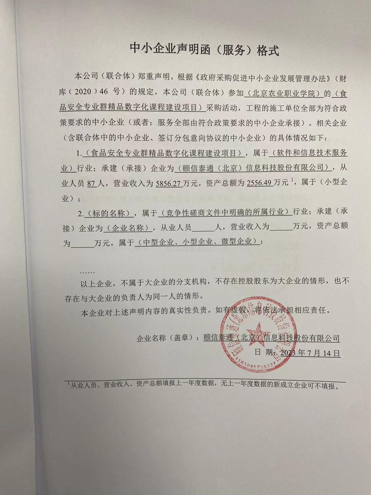 供應商名稱:頤信泰通(北京)信息科技股份有限公司