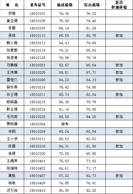 根據(jù)《北京農(nóng)業(yè)職業(yè)學(xué)院2018年面向社會(huì)公開招聘工作人員公告》,教師試講答辯及其他專業(yè)技術(shù)人員面試環(huán)節(jié)已結(jié)束,現(xiàn)將面試、綜合成績和體檢安排公告如下: