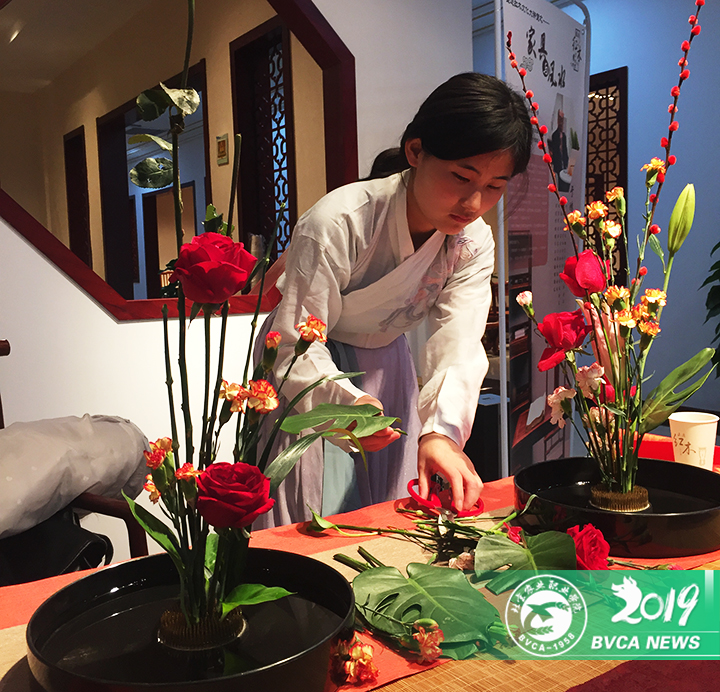 應北京市房山區良鄉盛通紅木文化館邀請,2019年1月1日,園藝療養社團參加了該文化館舉辦的琴、茶、花、香表演活動,園藝1712班李小弟代表園藝療養社進行了花藝表演。