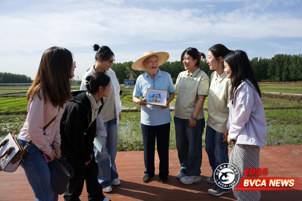 87歲高齡的李增高老師精神矍鑠、耳聰目明,腿腳利索的領(lǐng)著同學(xué)走進(jìn)稻田,一邊示范插秧技巧,一邊詳解秧苗生長(zhǎng)特性。訪談中,他回顧了在青年農(nóng)場(chǎng)扎根田間勞動(dòng)和參與建設(shè)學(xué)校的青春故事,分享了畢業(yè)后深耕水稻育種的奮斗歷程,講述了退休后繼續(xù)傾力投入京西稻研究的感人事跡。無(wú)論是響應(yīng)黨中央做新中國(guó)第一代有文化的農(nóng)民的號(hào)召,還是60多年始終如一的躬耕水稻研究,他用一輩子的實(shí)際行動(dòng)詮釋了愛(ài)黨報(bào)國(guó)、無(wú)私奉獻(xiàn)的理想信念,讓師生們深受觸動(dòng),不僅近距離感受到了老一輩農(nóng)職人的奮斗精神,更從其豐富經(jīng)歷中汲取到寶貴的精神財(cái)富與人生智慧。采訪結(jié)束時(shí),李老師還殷切囑托同學(xué)們要樹(shù)立遠(yuǎn)大的理想,永葆奉獻(xiàn)精神。