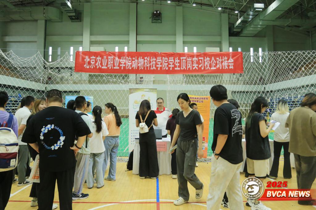 6月27日下午,動物科技學院在學校體育館成功舉辦2026屆畢業生頂崗實習校企對接會。本次活動吸引新瑞鵬寵物醫療集團有限公司、北京全心全意連鎖動物醫院有限責任公司、北京腦科學與類腦研究所、中國科學院遺傳與發育生物學研究所、中糧(北京)飼料科技有限公司等30余家行業知名企業參會,為現場300余名2026屆畢業生提供實習和就業機會。