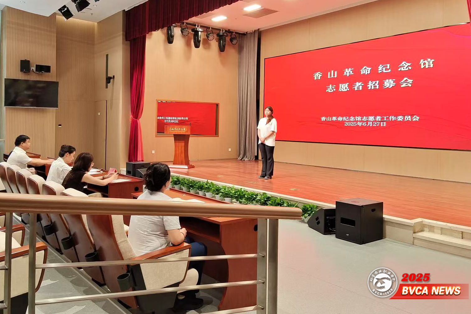 經過自薦-推薦-政審三級選拔機制,12名候選學生以出色的表現贏得紀念館專家高度評價。招募現場,同學們通過精彩的自我介紹和朗誦等特長充分展現個人素養與表達能力。香山革命紀念館宣教科的教員們聚焦香山革命紀念館所展示的這段歷史及意義、語言表達能力、溝通應變能力、心理素質,全方位進行考評,也從講解技巧運用、歷史知識闡釋、觀眾互動設計等維度進行了點評指導。面試后,紀念館宣教科負責人高度評價了同學們所展現的綜合素質和精神風貌,也希望同學們能夠深刻理解紀念館講解員的意義,期待在未來的志愿講解中看到同學們的身影。