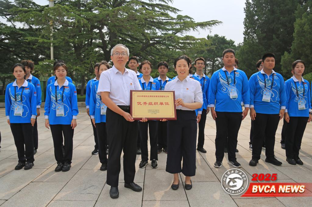 沈若萌對我校志愿者的辛勤付出給予充分肯定,對學校大力支持志愿服務工作表示衷心感謝,并為學校頒發“2024年毛主席紀念堂志愿服務工作優秀組織單位”獎牌。
