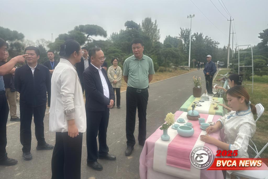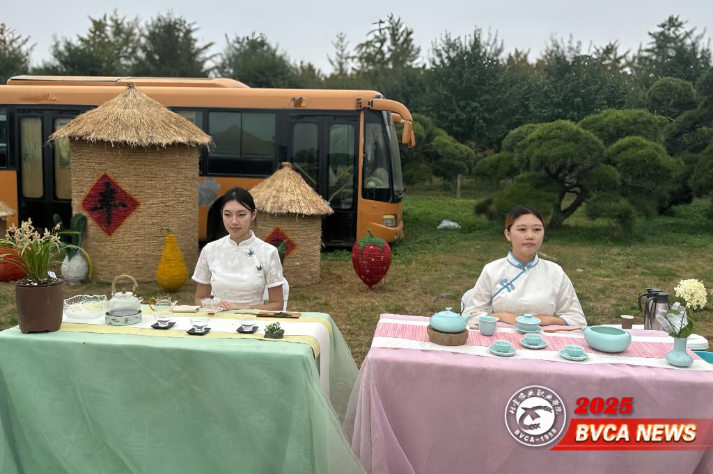 9月23日,房山區豐收節暨“百千工程·共富竇店”鄉村振興示范片區產業推介會在房山區凱營公園盛大開幕。商務與管理學院茶藝師生團隊受房山區農業農村局邀請表演茶藝,房山區委副書記張厚明、副區長蘇震宇等一行領導在現場觀看茶藝表演。