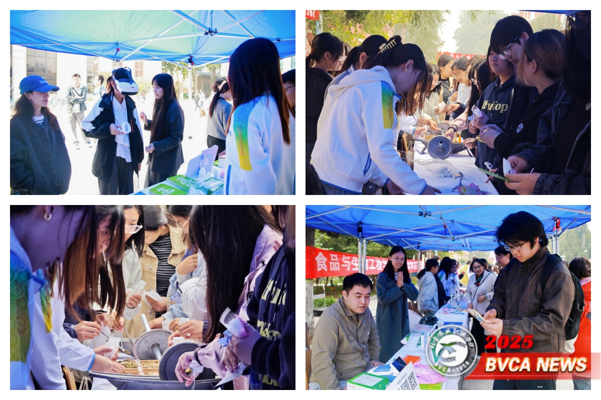 講座后,師生移步廣場參與互動體驗。VR設備、快速檢測等科普攤位讓大家在動手實踐中深化理解。手工唇膏、精油手工皂等學生自制產品體現專業特色與實踐成果。
