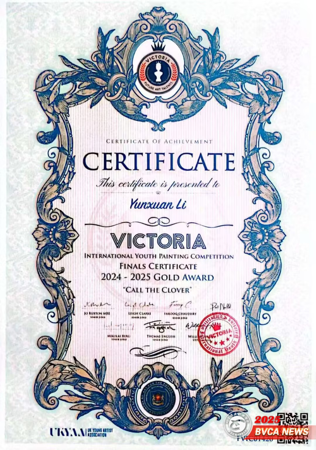 近日,園藝園林學院風景園林專業(yè)李昀暄同學憑借國畫作品《凌霄花》,在2024-2025英國維多利亞國際青少年繪畫大賽斬獲金獎。目前,該作品在英國倫敦藝術(shù)大學展出,向國際社會展現(xiàn)中國水墨藝術(shù)的獨特魅力。