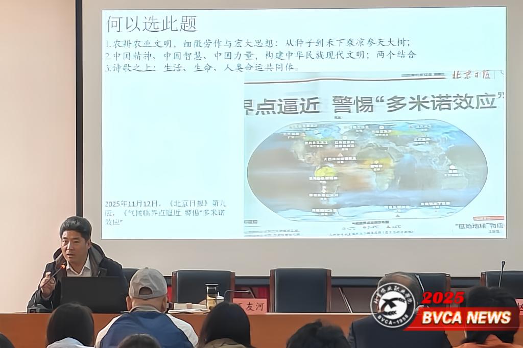 11月14日下午,學校關工委、團委、圖書館聯合在長陽校區舉辦“思政詩意·青春擔當——農事詩概覽”專題講座。北京市平谷區文聯黨組書記、主席、中國作家協會會員王友河應邀作《農事詩概覽及其對中華文明的深刻影響與偉大貢獻》主題報告,校關工委副主任趙章彬主持,百余名師生現場聆聽。
