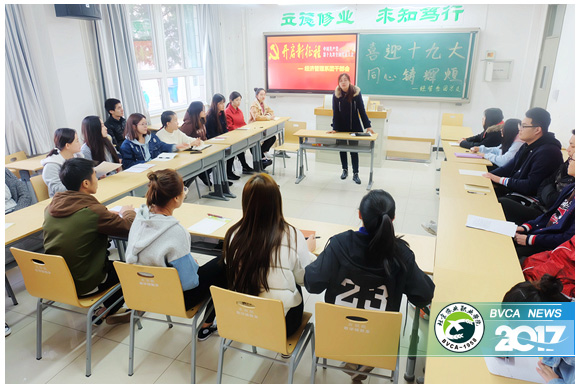 學習中,師生共同觀看了央視新聞聯(lián)播《十九大開幕會》新聞視頻,栗老師結合經(jīng)濟日報《精華版!十九大報告要點速覽》和共產(chǎn)黨員網(wǎng)《進入新時代!習近平這19個新提法你一定要知道》兩篇文章,為學生解讀十九大報告中習近平總書記的19個新概念、新提法,劃出十九大報告的諸多重點和亮點。各團支部的干部就大會內(nèi)容對當代大學生的指導意義做了討論,分享了自己觀看十九大開幕會視頻以及學習十九大報告的心得體會。