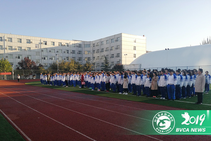 10月14日早7:20北苑校區全體貫通學生舉行“慶祝中華人民共和國成立70年,我與祖國共奮進——不忘初心、牢記使命”主題教育升旗儀式。