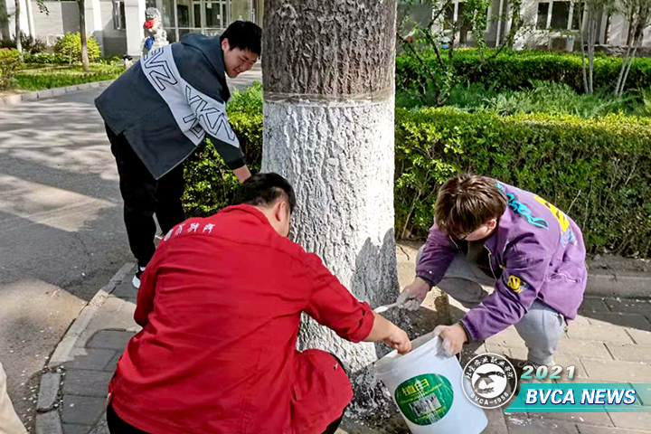 4月19日下午,清河校區團總支組織了一次在校生的志愿服務活動,即為校園內的樹木“刷白”。在聽取了后勤三分中心老師們的科普講解后,同學們紛紛拿起手中工具,開始熱火朝天地工作起來。