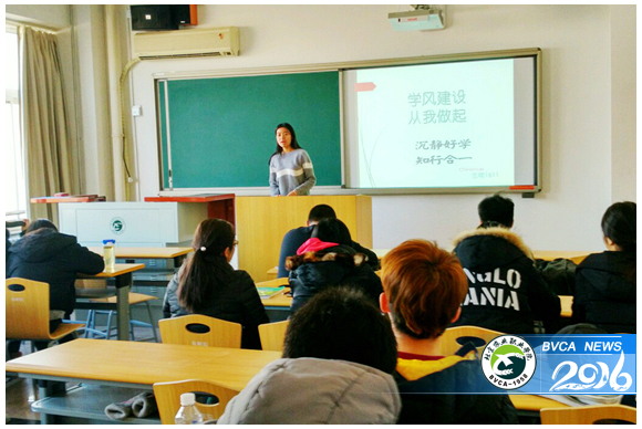 在綠檢1512班班會上,學習委員發(fā)言介紹了本班學風建設情況以及個人對于學風建設的看法,大家都積極發(fā)言,就學風的問題,暢所欲言,針對本班的不足,直抒己見,并誠懇地提出很有實際意義的意見與建議。綠檢1611班組織觀看了關于合理利用網(wǎng)絡的視頻,同學們紛紛表示,以后要合理利用上網(wǎng)時間,不沉迷于網(wǎng)絡,更好地學習知識、積極參加集體活動和體育鍛煉,提高自身素質。營養(yǎng)1511班、綠檢1511班也都分別以班會的形式組織全班討論了學風建設的重要性,大家積極主動地談對學風建設的認識,倡議在期末考試期間嚴守紀律,誠信應考,發(fā)揮實力。生物1611、營養(yǎng)1611和綠檢1612班則針對大一新生有許多同學不能很好的把握“學”與“逸”的關系問題展開討論,同學們通過討論認識到,應努力做到樹立長期的學習目標,樹立近期及遠期的生活理想,養(yǎng)成正確的學習生活習慣;努力端正學習目的和態(tài)度,清醒認識自己的狀況。