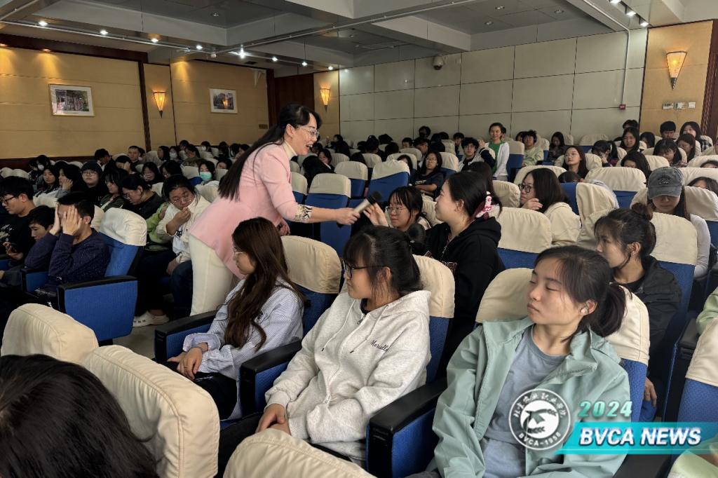 范麗君老師通過介紹《非暴力溝通》書籍的作者、譯者,非暴力溝通的四要素即觀察、感受、需要、請求等方面內容,與大家分享非暴力溝通的內容及核心目的。同時,結合中國傳統文化及鮮活案例,向大家講授如何在校園和生活中應用到非暴力思維及處理方法,幫助師生實現情意相通、相互關心的人際關系。活動現場師生積極互動,范麗君針對學生提出的宿舍關系溝通問題進行了“非暴力”思路的溝通指導和訓練。