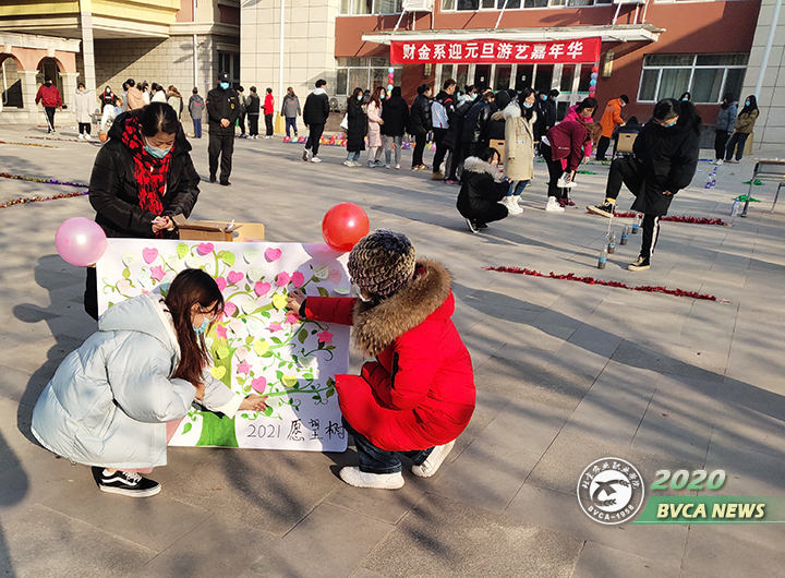 文藝演出拉開了嘉年華活動的序幕。游藝環節設置了投壺、沙包擲準、粘粘球擲準、吊針進瓶、套圈、筷子夾球、保齡球等7個項目,游戲操作簡單有趣,大家都積極參與其中。最后,大家在“愿望樹”上寫下了新年愿望。2021年“愿望樹”將會展示在財金系宣傳欄里,祝福和激勵大家。
