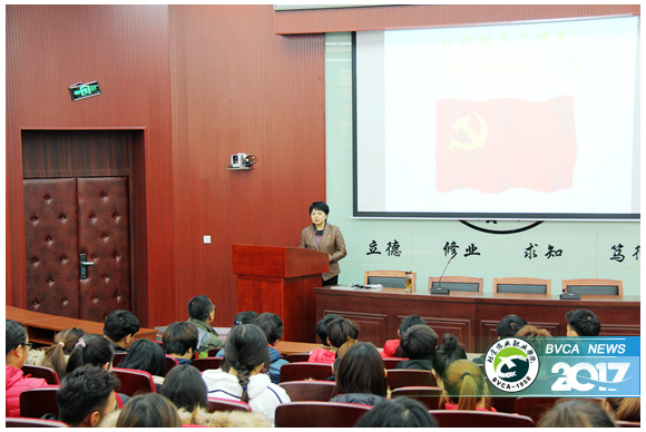 陳麗清同志首先與學生展開互動,通過“為什么入黨?黨員應該是什么樣的?”兩個問題引發大家的討論交流。隨后,她主要介紹了入黨的動機、黨員發展程序和如何寫思想匯報等內容,對同學們提出四點希望和要求:一是熱愛中國共產黨,堅定跟黨走的信念;二是嚴格遵守學院的各項規章制度,在班里起模范帶頭作用;三是積極參加學院和班級組織的各項活動,發揮模范帶頭作用;四是刻苦學習文化知識,履行學生職責,在班里做學習的榜樣。