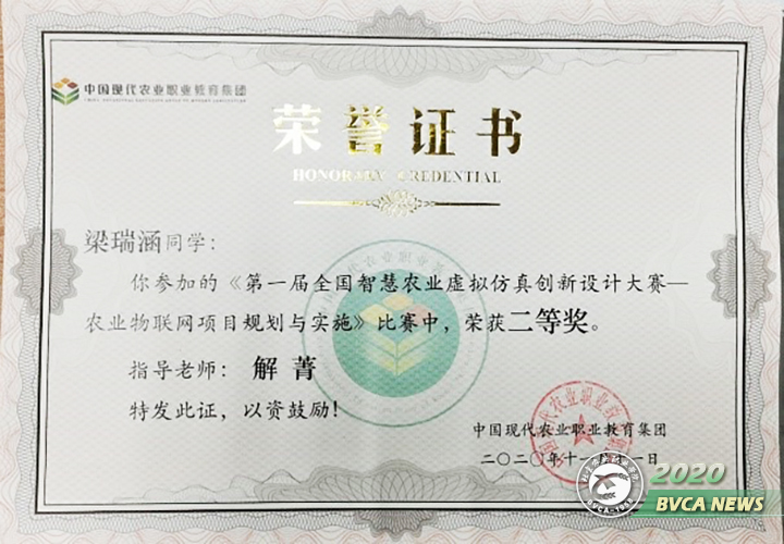 11月1日,我院信息技術(shù)系邊玉超、解菁兩位老師指導(dǎo)物聯(lián)1811班19名學(xué)生參加了“2020年第一屆全國智慧農(nóng)業(yè)虛擬仿真創(chuàng)新設(shè)計大賽-農(nóng)業(yè)物聯(lián)網(wǎng)項目規(guī)劃與實施”賽項。其中,梁瑞涵、孫海龍同學(xué)分別獲得二等獎和三等獎。